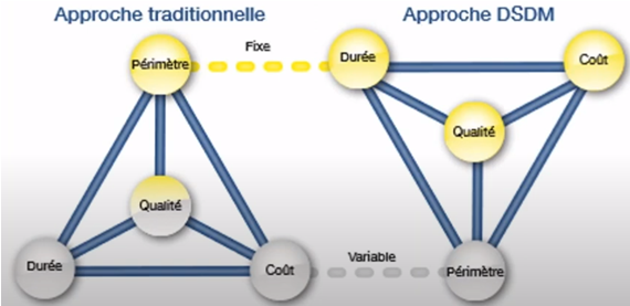 L'approche CQPD représente une évolution significative dans la gestion de projet, notamment dans le domaine du développement logiciel. Contrairement au paradigme traditionnel où le périmètre du projet est souvent considéré comme une variable fixe tandis que les contraintes de temps, de coûts et de qualité sont ajustées en conséquence, l'approche CQPD propose un changement de perspective radical.